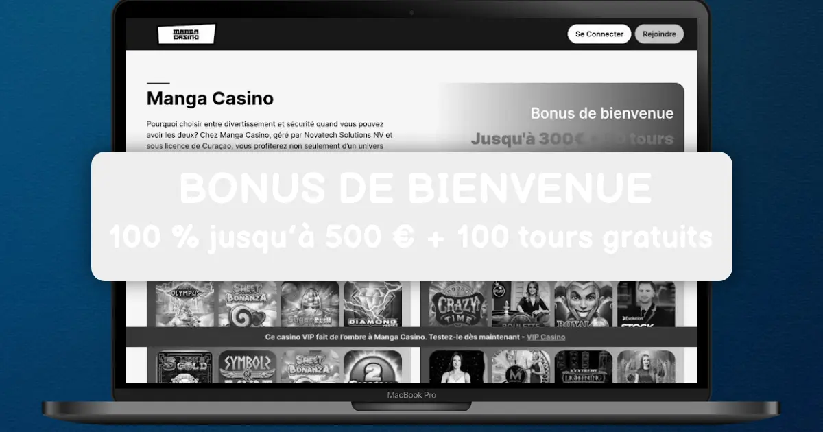 Bienvenue chez Manga Casino, votre portail vers une expérience de jeu inégalée! Plongez dans un univers captivant avec notre offre de bienvenue exceptionnelle : un bonus de dépôt alléchant et des tours gratuits pour maximiser vos chances de gagner dès le départ. Manga Casino se distingue par ses paiements rapides, vous assurant de recevoir vos gains sans délai. Découvrez une vaste gamme de jeux, allant des machines à sous palpitantes aux jeux de table classiques, tous optimisés pour une compatibilité mobile parfaite. Notre service client dévoué est à votre disposition 24/7 pour répondre à toutes vos questions et vous garantir une expérience de jeu fluide. Rejoignez dès maintenant Manga Casino et laissez-vous emporter par lexcitation du jeu en ligne. Commencez à jouer et ressentez ladrénaline du casino à portée de main!